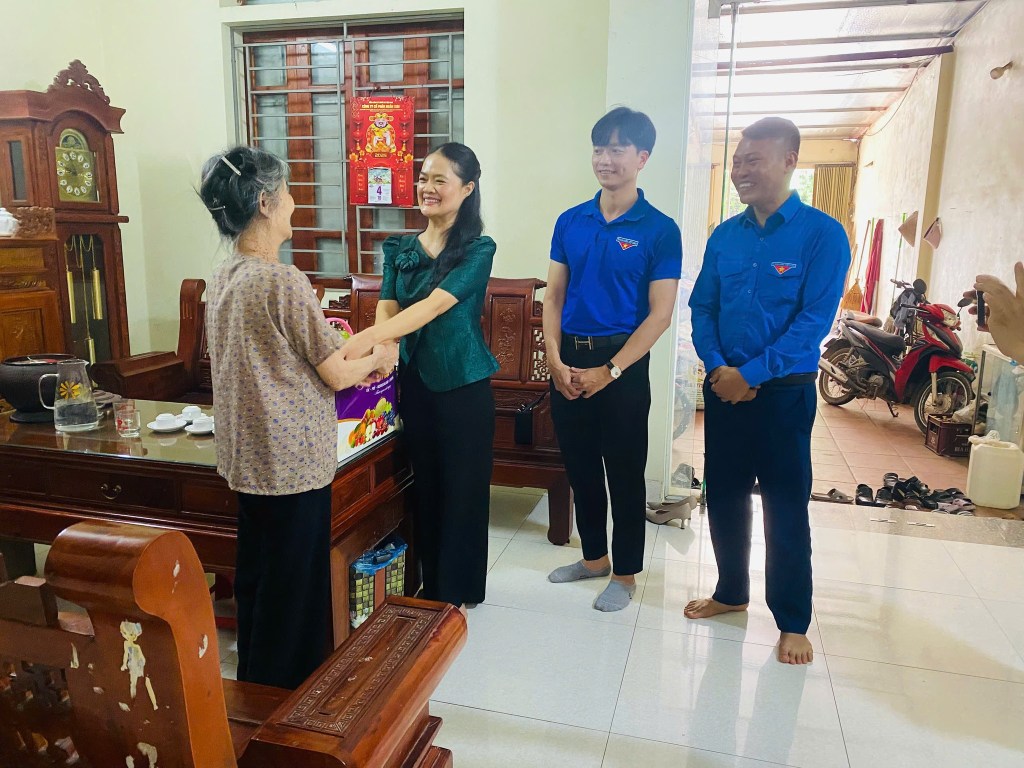 Cũng trong dịp này, Đoàn xã đã đến thăm hỏi, tặng quà và bày tỏ lòng biết ơn sâu sắc tới Mẹ Việt Nam Anh hùng -Đinh Thị Sùng tại thôn Quế Sơn, xã Hợp Thịnh.– người đã có những cống hiến, hy sinh to lớn vì sự nghiệp giải phóng dân tộc.