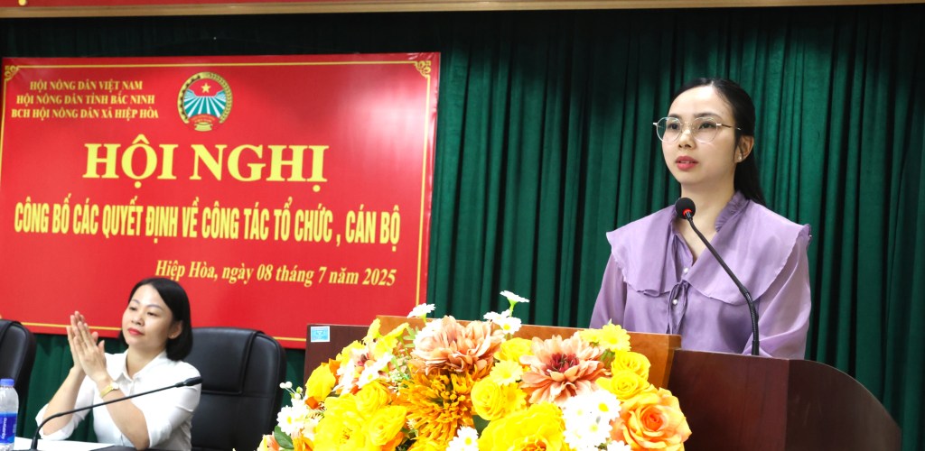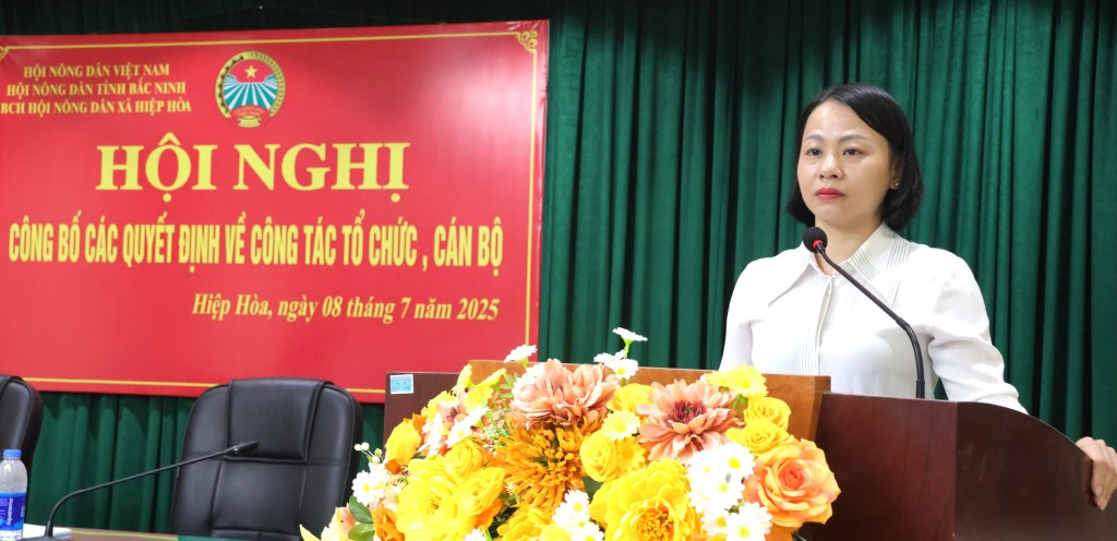 Tại hội nghị, Lãnh đạo Hội Nông dân xã Hiệp Hòa công bố Quyết định số 43-QĐ/HNDT ngày 01/7/2025 của BCH Hội Nông dân tỉnh Bắc Ninh về thành lập Hội Nông dân xã Hiệp Hoà và Quyết định số125-QĐ/HNDT, ngày 01/7/2025 của BCH Hội Nông dân tỉnh Bắc Ninh về chỉ định Ban chấp hành và Ban Thường vụ, Chủ tịch, Phó Chủ tịch Hội Nông dân xã Hiệp Hòa.