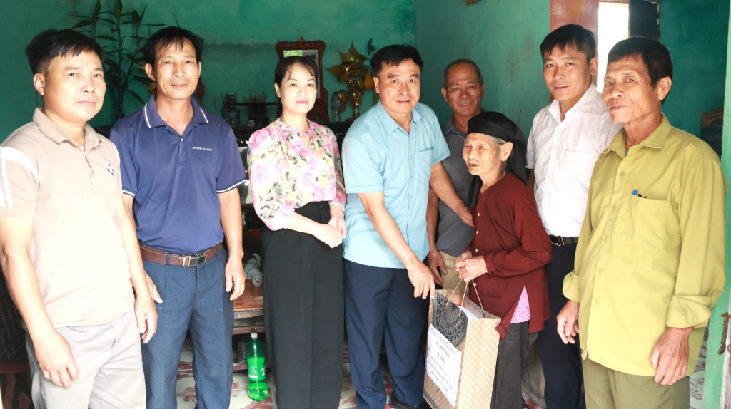 Đồng chí Nguyễn Xuân Thảo, Chủ tịch UBND xã thăm, tặng quà bà Vũ Thị Hoán