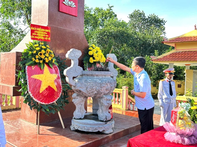 Theo đó, Đoàn số 1 do đồng chí Hoàng Văn Tri – Bí thư Đảng ủy, Chủ tịch HĐND xã làm trưởng đoàn dự lễ và thắp hương tại Nghĩa trang liệt sĩ Ngọc Sơn;