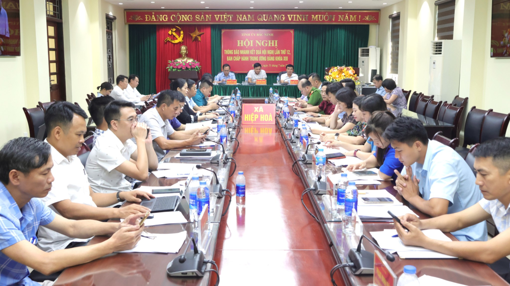 Chiều 31/7, Tỉnh ủy Bắc Ninh tổ chức hội nghị thông báo nhanh kết quả Hội nghị lần thứ 12, Ban Chấp hành Trung ương Đảng khóa XIII theo hình thức trực tiếp và trực tuyến, kết nối điểm cầu Tỉnh ủy đến điểm cầu tại các xã, phường và đảng ủy trực thuộc Tỉnh ủy với sự tham gia của gần 3.000 đại biểu.