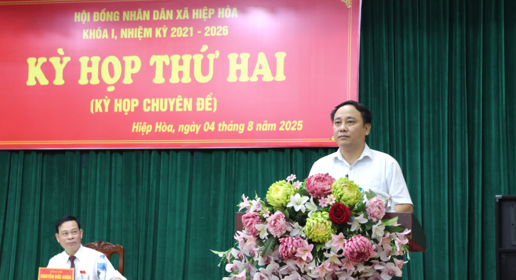 Tại kỳ họp chuyên đề, hội đồng nhân dân xã đã xem xét, thảo luận và quyết định thông qua 9 nghị quyết: Nghị quyết về chỉ tiêu phát triển kinh tế xã hội chủ yếu năm 2025, nhiệm vụ giải pháp chủ yếu các tháng cuối năm; nghị quyết về dự toán thu chi ngân sách nhà nước xã Hiệp Hòa sau sắp xếp, nghị quyết kế hoạch đầu tư công trung hạn giai đoạn 2021 – 2025 và kế hoạch đầu tư công năm 2025 của xã, nghị quyết về việc quyết định chỉ tiêu biên chế cán bộ, công chức, số người làm việc trong các cơ quan hành chính, đơn vị sự nghiệp công lập của xã Hiệp Hòa sau sắp xếp đơn vị hành chính; Nghị quyết đổi tên thôn do trùng tên khi thực hiện chính quyền địa phương 2 cấp.