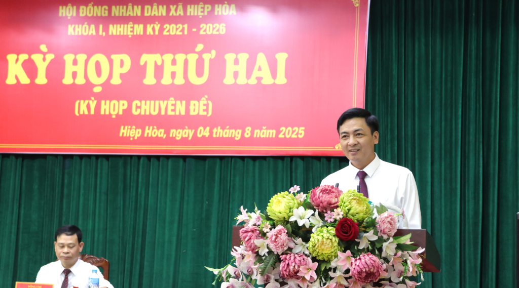 Phát biểu khai mạc Kỳ họp, đồng chí Bùi Huy Khánh- Bí thư Đảng ủy, Chủ tịch HĐND xã nhấn mạnh, đây là kỳ họp có ý nghĩa quan trọng nhằm đánh giá tình hình kinh tế – xã hội, an ninh quốc phòng năm 2025, quyết định mục tiêu, nhiệm vụ 6 tháng cuối năm 2025 và thực hiện một số nhiệm vụ thuộc thẩm quyền theo quy định của Luật. Đặc biệt là trong điều kiện bộ máy chính quyền địa phương hai cấp mới được vận hành từ ngày 1/7/2025. Xã Hiệp Hòa bước vào giai đoạn kiện toàn, ổn định tổ chức đồng thời chỉ đạo triển khai thực hiện các nhiệm vụ, các công việc trong điều kiện mới, xã là đơn vị có quy mô lớn về dân số, diện tích và nhiều tiềm năng đột phá về công nghiệp, đô thị, dịch vụ và trở thành phường trước năm 2030. Đồng chí Bí thư Đảng ủy, Chủ tịch HĐND xã đề nghị các đại biểu nêu cao tinh thần trách nhiệm, phát huy dân chủ, trí tuệ, tích cực thảo luận, đóng góp ý kiến sâu sắc, thiết thực, có tính xây dựng cao để các nghị quyết thông qua bảo đảm đúng luật, phù hợp thực tiễn, sớm đi vào cuộc sống.