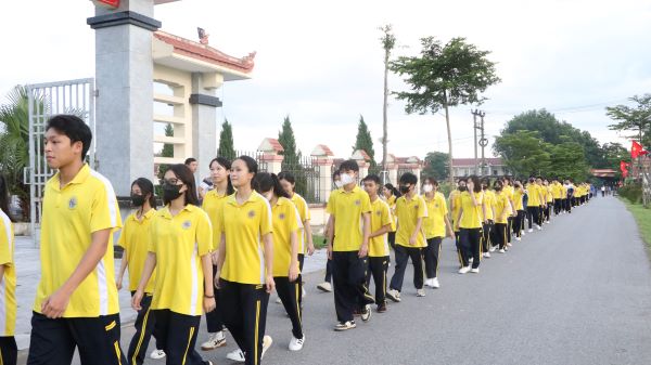Đoàn lãnh đạo các nhà trường và học sinh trường THPT Hiệp Hòa số 4 tham gia đi bộ