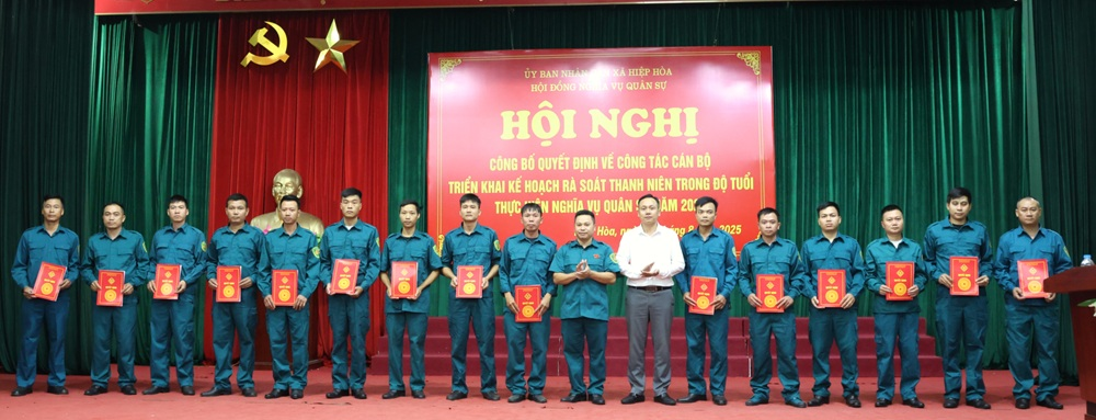 Chiều 26/8, Hội đồng nghĩa vụ quân sự xã Hiệp Hòa tổ chức Hội nghị công bố các Quyết định về công tác cán bộ và triển khai kế hoạch rà soát công dân trong độ tuổi sẵn sàng nhập ngũ năm 2026.
