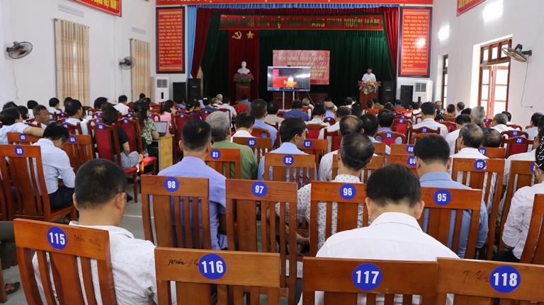 Đồng chí Hoàng Văn Tri- Bí thư Đảng ủy, Chủ tịch HĐND xã chủ trì tại điểm cầu xã Hoàng Vân. Cùng dự có các đồng chí: Trần Văn Vỹ- Phó Bí thư Thường trực Đảng ủy; Phạm Văn Nghị- Phó Bí thư Đảng ủy, Chủ tịch UBND xã; các đồng chí Ủy viên Ban Thường vụ Đảng ủy; Ủy viên Ban Chấp hành Đảng bộ xã, lãnh đạo HĐND, UBND, Các đồng chí Ủy viên Ủy ban Kiểm tra Đảng ủy, các đồng chí nguyên Ủy viên Ban Thường vụ Huyện ủy (cũ) nghỉ hưu trên địa bàn, các đồng chí nguyên Ủy viên Ban Thường vụ Đảng ủy các xã (cũ) nghỉ hưu trên địa bàn, xã, Ủy ban MTTQ và các tổ chức chính trị – xã hội, các đồng chí hiệu trưởng, phó Hiệu trưởng các trường học trên địa bàn, lãnh đạo các Trạm y tế trên địa bàn; Các đồng chí Bí thư chi bộ, trưởng, phó các thôn trên địa bàn.