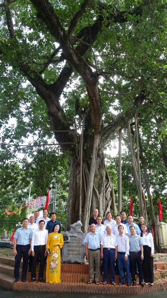 Đoàn chụp ảnh lưu niệm tại cây đa cổ thụ xã Hiệp Hoà