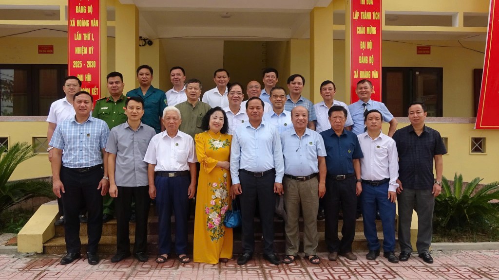 Đoàn chụp ảnh lưu niệm tại xã Hoàng Vân