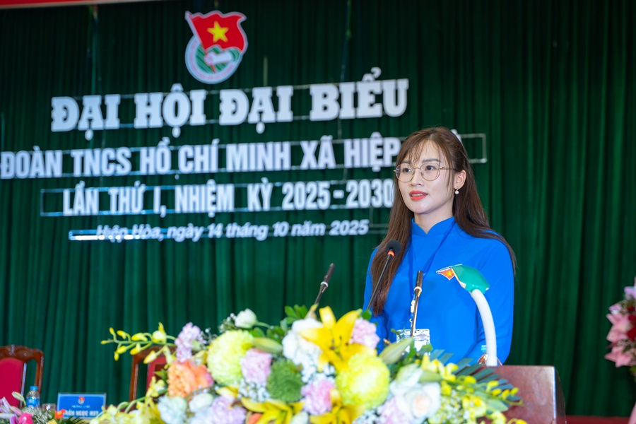 Đại hội đã công bố Quyết định của Ban Thường vụ Tỉnh Đoàn về việc chỉ định Ban Chấp hành gồm 25 đồng chí, Ban Thường vụ gồm 7 đồng chí, chỉ định chức danh Bí thư, Phó Bí thư, Ủy ban Kiểm tra Đoàn TNCS HCM xã khóa I. Chị Nguyễn Thị Hường, Phó Chủ tịch UBMTTQ xã được chỉ định giữ chức Bí thư Đoàn TNCS HCM xã Hiệp Hòa, khóa I, nhiệm kỳ 2025 – 2030.
