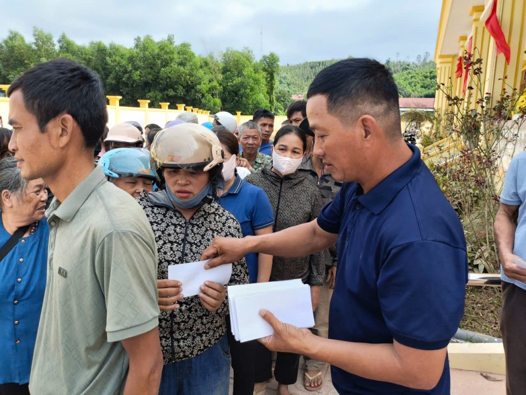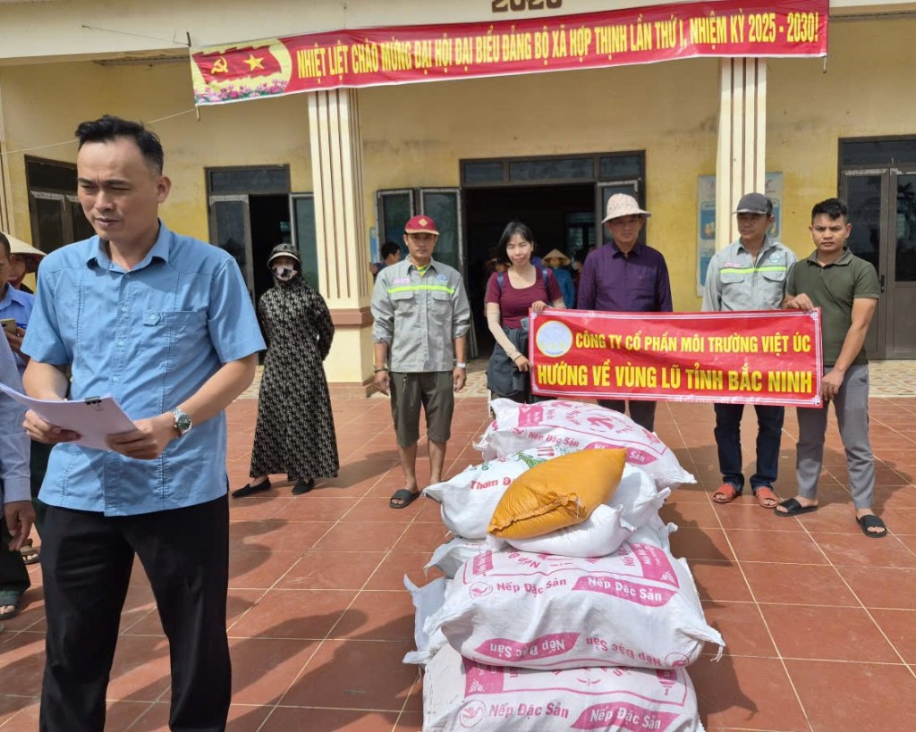 “ Số gạo, tiền và hàng này là tình cảm của cán bộ công nhân viên Công ty cổ phần Môi trường Việt Úc; Công ty TNHH Thương mại Dịch vụ Môi trường Nam Bộ cùng các nhà hảo tâm, gom góp chia sẻ, ủng hộ đồng bào miền Bắc bị thiệt hại do trận lũ bão tháng 10 vừa qua- Tổng giá trị chuyến hàng khoảng 360 triệu đồng…Chúng tôi cũng đã rất cố gắng gom góp, dù một chút thôi, nhưng rất mong được sẻ chia vơi bớt những khó khăn đồng bào đang phải gánh chịu…” ông Nguyễn Hữu Trưởng đoàn chia sẻ với phóng viên;