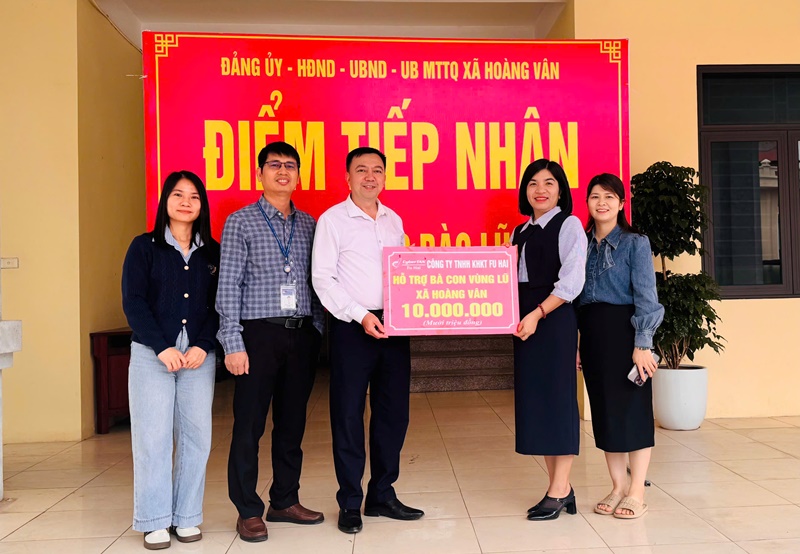 Bão lũ đã đi qua nhưng để lại những thiệt hại nặng nề với người dân. Tại xã Hoàng Vân, công tác khắc phục hậu quả sau bão lũ được triển khai thực hiện nhanh chóng, giúp người dân ổn định cuộc sống. Nhiều nguồn lực đã được huy động, trong đó có Công ty TNHH KHKT Fu Hai thuộc Khu công nghiệp Hòa Phú xã Xuân Cẩm, tỉnh Bắc Ninh vừa đến thăm và trao số tiền ủng hộ nhân xã xã hoàng Vân 10 triệu đồng.