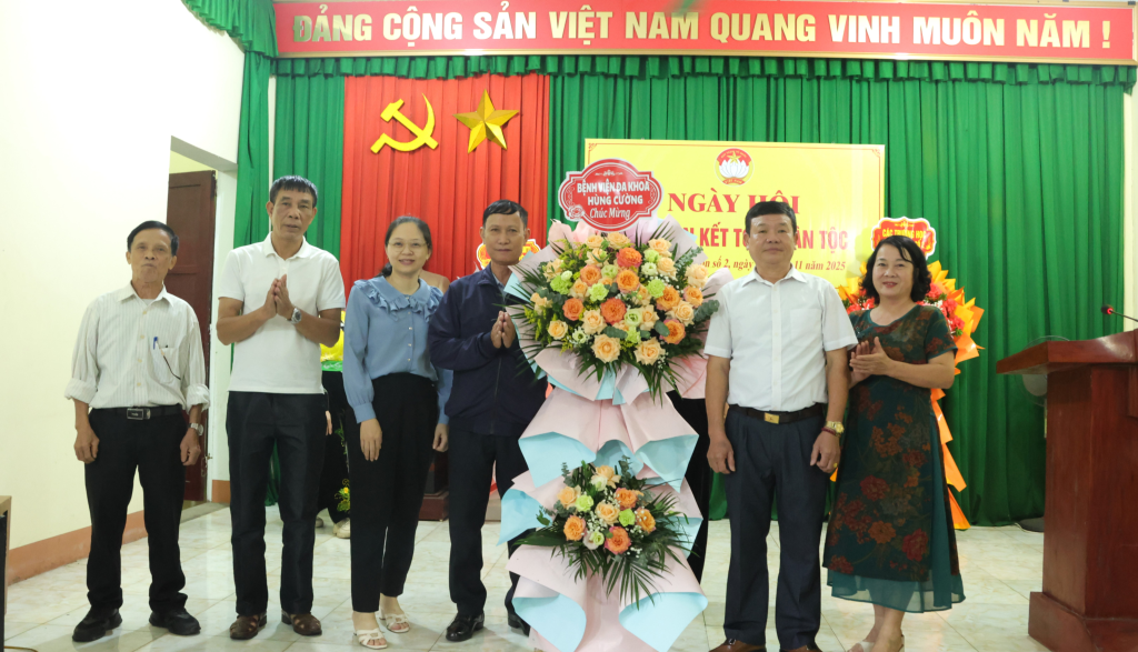 Đại diện bệnh viện đa khoa Hùng Cường tặng hoa chúc mừng