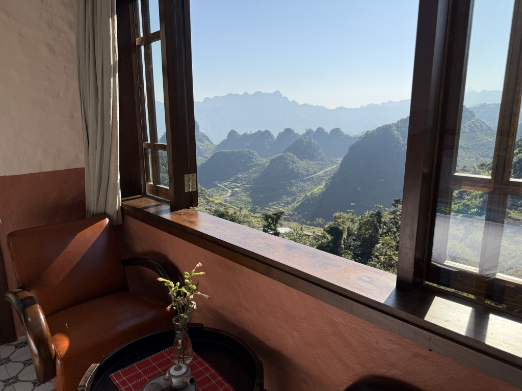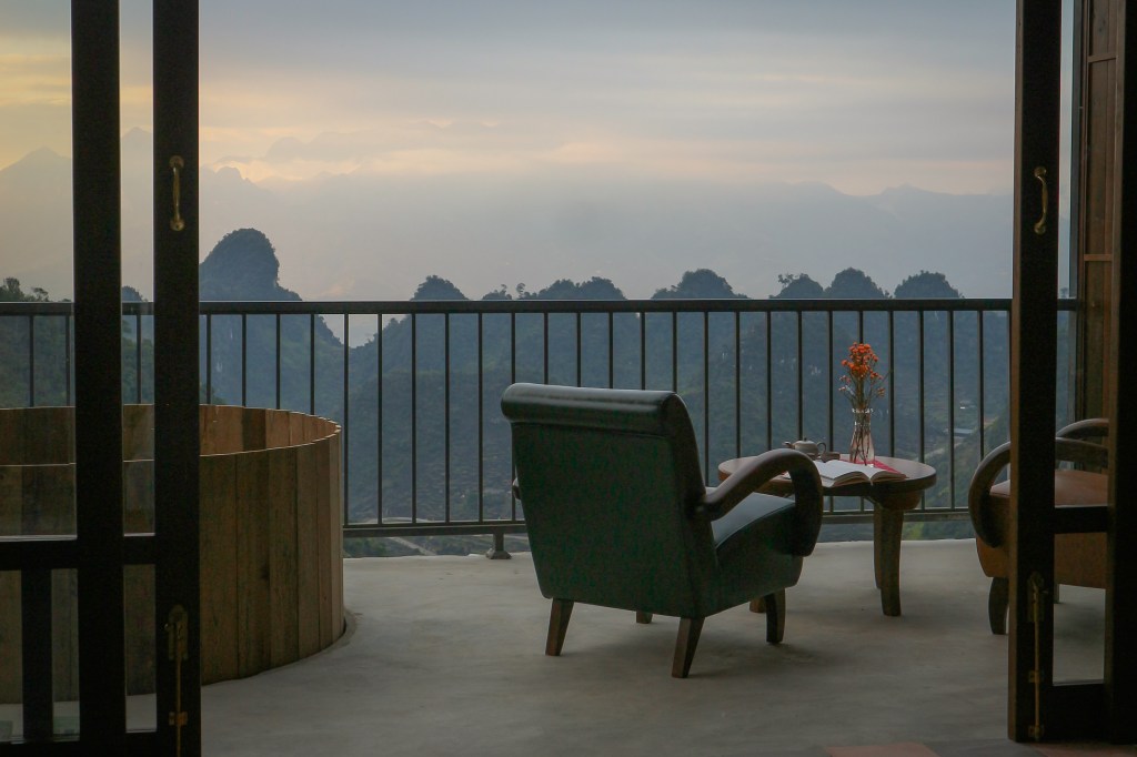 Yếu tố thứ ba là cảnh quan thiên nhiên. Mỗi phòng và khu vực nhà hàng đều được thiết kế hướng ra dãy núi đá vôi hùng vĩ. Vào những buổi sáng nhất định, mây thấp bao phủ thung lũng, tạo nên khung cảnh “săn mây” tự nhiên ngay từ phòng nghỉ hoặc sân hiên.