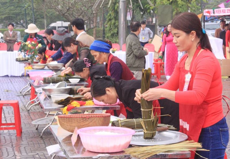Làng bánh vào vụ tấp nập nhất từ ngày 20 đến 30 tháng Chạp. Thời điểm này, mỗi gia đình thường huy động mọi người làm bánh như: Làm nhân, buộc lạt, rửa lá. Ngày thường, bà Chu Thị Hường thường đi làm thuê, làm mướn nhưng từ 20 tháng Chạp là cả nhà tất bật gói bánh chưng để bán. Bà cho biết: “Khách hàng thường đến đặt bánh từ 20 tháng Chạp. Từ ngày đó cho đến 30 tết, tôi phải luôn chân luôn tay từ 3 giờ sáng đến 12 giờ đêm. Nhiều khi làm không xuể, tôi phải nhờ mấy chị hàng xóm sang gói cùng. Tuy vất vả nhưng cũng có thêm chút thu nhập sắm tết”. Không chỉ bà Hường mà hàng chục lao động trên địa bàn xã có công ăn việc làm từ việc gói bánh chưng tết. Thường một hộ đứng ra nhận hàng và tập hợp khoảng 3-4 gia đình thành nhóm gói bánh. Bánh chưng nơi đây bình quân giá bán năm nay 70 nghìn đồng/chiếc, trừ chi phí mỗi nồi bánh (30 kg) cũng lãi 200 – 300 nghìn đồng. Khách hàng từ khắp các vùng, miền về đặt hàng đông nườm nượp. Dịp tết này, người dân nơi đây cung cấp hàng nghìn chiếc bánh chưng ra ngoài thị trường.