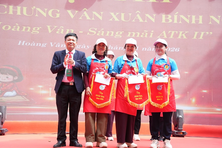 Ban tổ chức trao giải Nhất cho đội thi thôn Vân Xuyên