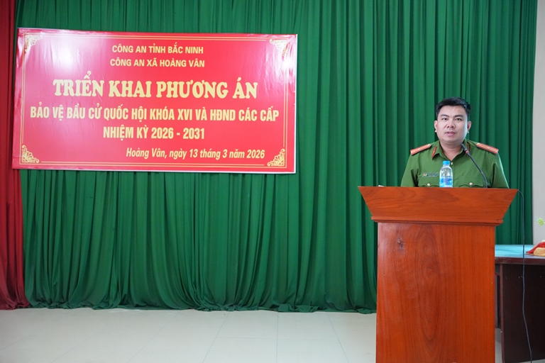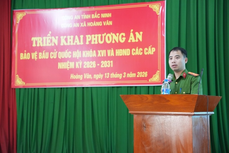Chiều ngày 13/3/2026, Công an xã Hoàng Vân đã tổ chức hội nghị triển khai phương án bố trí, phân công lực lượng bảo đảm an ninh trật tự tại các khu vực bỏ phiếu bầu cử đại biểu Quốc hội khóa XVI và đại biểu Hội đồng nhân dân các cấp nhiệm kỳ 2026 – 2031 trên địa bàn xã.