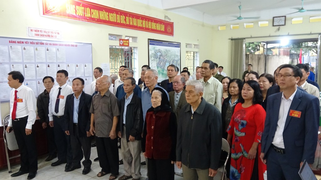 Chào cờ khai mạc- Cử tri trình thẻ và nhận phiếu bầu
