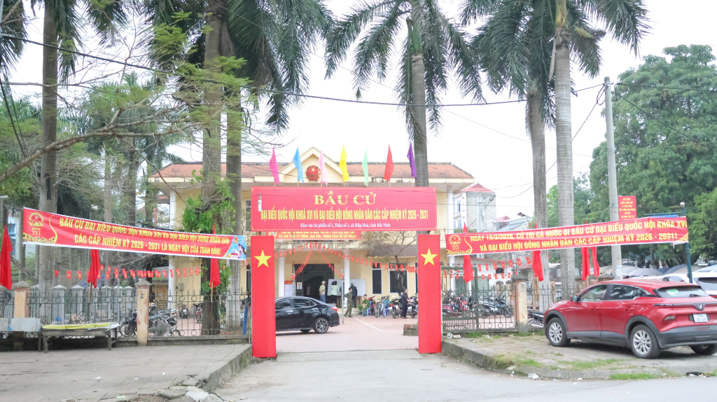 Ngay từ sáng sớm, khu vực bỏ phiếu được trang hoàng rực rỡ bởi cờ, hoa, pa-nô, khẩu hiệu tuyên truyền. Đông đảo cử tri có mặt từ sớm, thực hiện quyền và nghĩa vụ công dân trong không khí trang nghiêm, phấn khởi. Công tác tổ chức bầu cử được chuẩn bị chu đáo, đúng quy định; các lực lượng phục vụ bầu cử làm việc nghiêm túc, trách nhiệm.