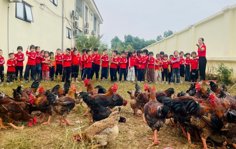 Biến khuôn viên nhà trường thành vườn hoa, khu chăn nuôi, Trường Mầm non Thanh Vân đã triển khai sáng tạo phong trào “Trồng một cây, nuôi một con”. Chỉ sau một thời gian ngắn, mô hình đã mang lại hiệu quả kép: Nhà trường đã thu hoạch 320kg gà sạch cải thiện bữa ăn cho trẻ, trồng mới 150 cây xanh và quan trọng hơn là tạo môi trường “học bằng trải nghiệm” sinh động, gieo mầm yêu thương, tinh thần trách nhiệm cho các bé.